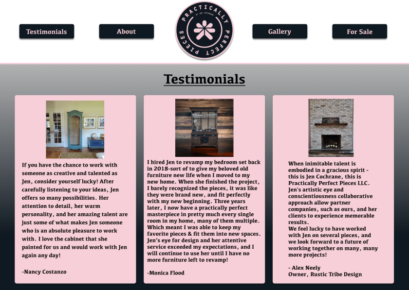 This was a freelance project done for a furniture refinishing business that needed a simple website to show off products and connect with potential vendors and suppliers